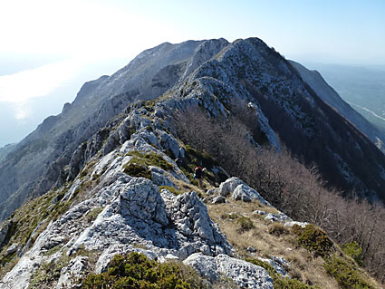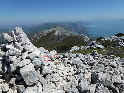 Dotad smo savladali preko 1200 m visinske razlike što nas je , uz umor od putovanja i neprospavane noći, strašno iscrpilo. Uživali smo u pogledu sa jedne od najteže dostupnih kontrolnih točaka HPO-a i prekrasno bi ovdje bilo ostati i odmarati do navečer ali moramo dalje. Čekao nas je najljepši grebenski put u Hrvatskoj, oštar i rastrgan greben, ali vrlo uzbudljiv sa prekrasnim vidicima.