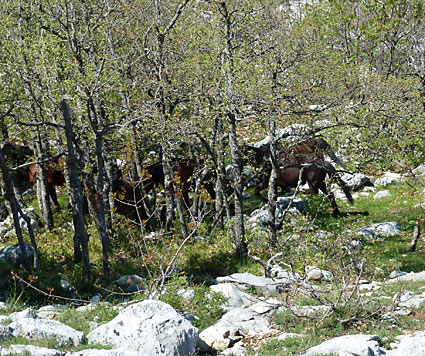 To je bio i najduži dan po hodanju jer sam se s grebena još morao spustiti sat i pol u selo Višnjicu do šatora, gdje sam stigao oko 22 sata, a moji prijatelji već su duboko utonuli u san. Tad još nisam znao da sutra ujutro dolazi auto po nas tako da sam se iznenadio jer Zvonkova supruga, Ivana je već u šest ujutro bila tamo. Nakon dogovora i analize trenutne situacije (dobro stanje bez žuljeva i bolova u nogama, dobra vremenska prognoza, dodatne sugestije domaćeg lovca) odlučio sam ostati i završiti ovu avanturu za svoje prijatelje i Društvo. Plan je bio da danas završim do Baćinskih jezera i vraćam se kući. Do podne je sve išlo glatko jer mi je domaći lovac Bogdan do detalja opisao stazu kroz dio njihovog lovišta, a problematičan je bio dio bez markacija od križanja staze koja se spušta u Podace do kapelice Gospe od Milosrđa. Taj dio sa markacijama prošao bi se za četrdesetak minuta, a ovako mi je trebalo dva sata uz susrete sa divljim konjima koji su me dobro preplašili.