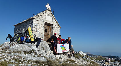 Za dva sata stigli smo do vrha Sveti Ilija (1642m) do njegove bijele kapelice sagrađene na starim temeljima.